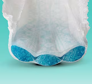 Absorve e retém a umidade no interior da fralda