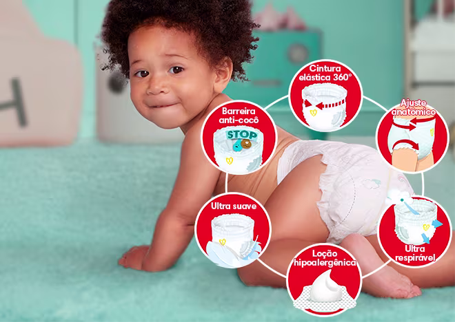 Quando você seleciona ou compra produtos por meio dos links nesta página, a Procter & Gamble Company pode receber dados de transações e combiná-los com outras informações para fornecer a você publicidade online mais relevante de acordo com sua política de privacidade. *vs. Pampers Premium Care